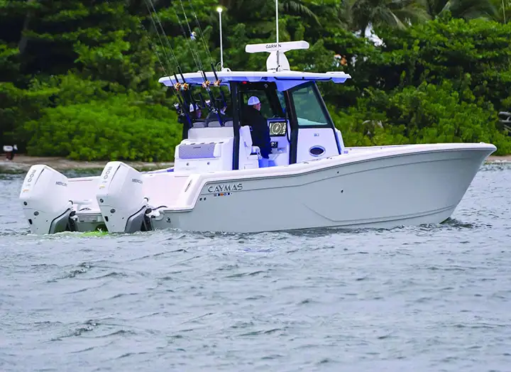The Caymas 34 CT is built for those who refuse to be limited by boundaries. Designed to take on whatever Mother Nature throws its way, this powerhouse is ready for the roughest waters with double-stepped, semi-asymmetric hulls and aggressive bow flair. You'll fish in conditions others wouldn't dare, all while riding in unmatched comfort. Fueled by dual 200-gallon tanks and packing up to 1,000 HP.