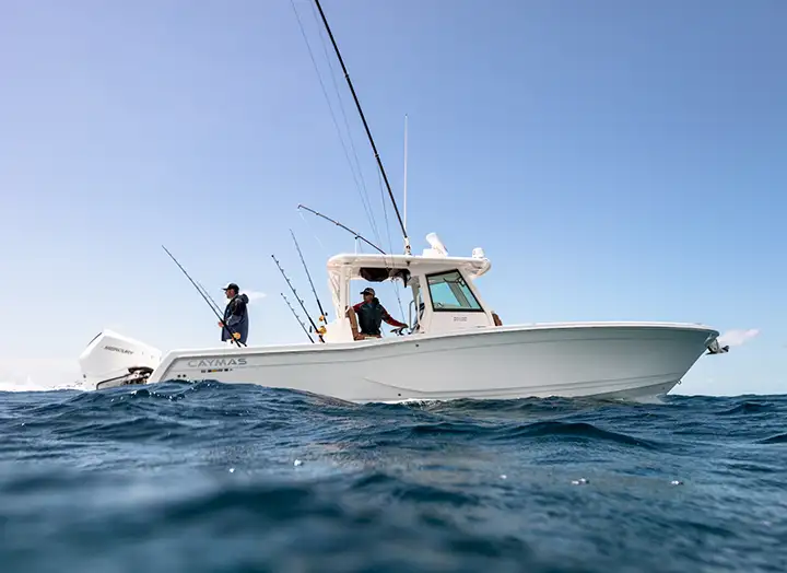 Caymas Boats' center console lineup is built for the hardcore offshore angler who refuses to compromise. Battle rough seas in pursuit of the ultimate catch, then kick back in comfort with family and friends — all in the same boat. Adventure or relaxation? With Caymas, you don't have to choose.