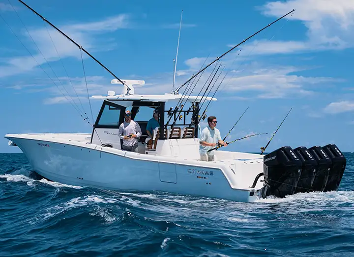 Sometimes, the thrill of the open water demands something extraordinary. At Caymas, we push the limits of innovation, crafting boats that redefine performance, customization, and quality for both hardcore competitors and everyday anglers. Enter the Caymas 44 CT, a game-changer in the center console world. Built for speed, power, and ultimate versatility, this beast delivers an unmatched blend of performance, comfort, and luxury.